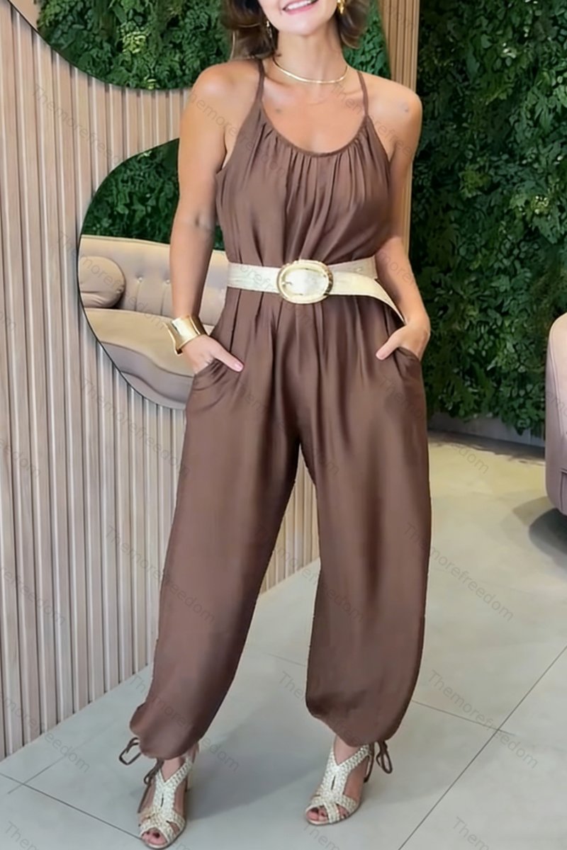 Women's loose-fitting solid-color strappy jumpsuit$62.99 USD$66.99 USD