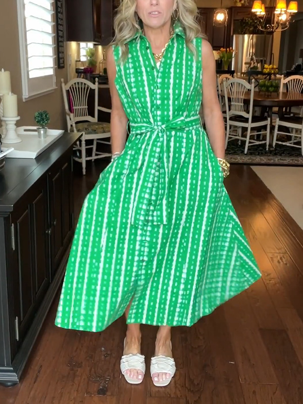 New🔥 Lapel Button Printed Waistband Dress$39.99 USD$79.80 USD