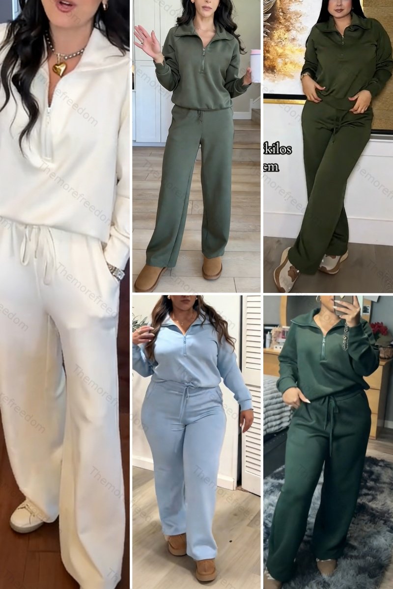 Women's autumn style patchwork two-piece set: sweatshirt and sweatpants$62.99 USD$68.99 USD
