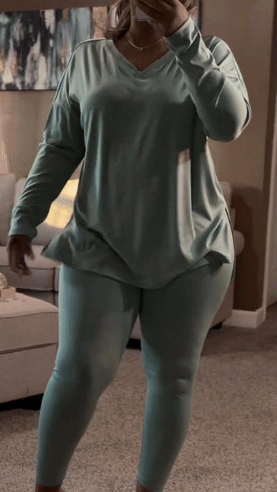 Women's autumn two-piece set, stylish solid color long-sleeved split-hem loungewear set