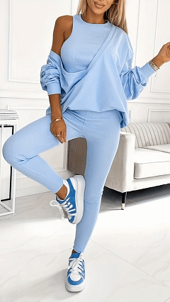 Women's autumn winter new arrival solid color three-piece long-sleeved top and pants tracksuit set