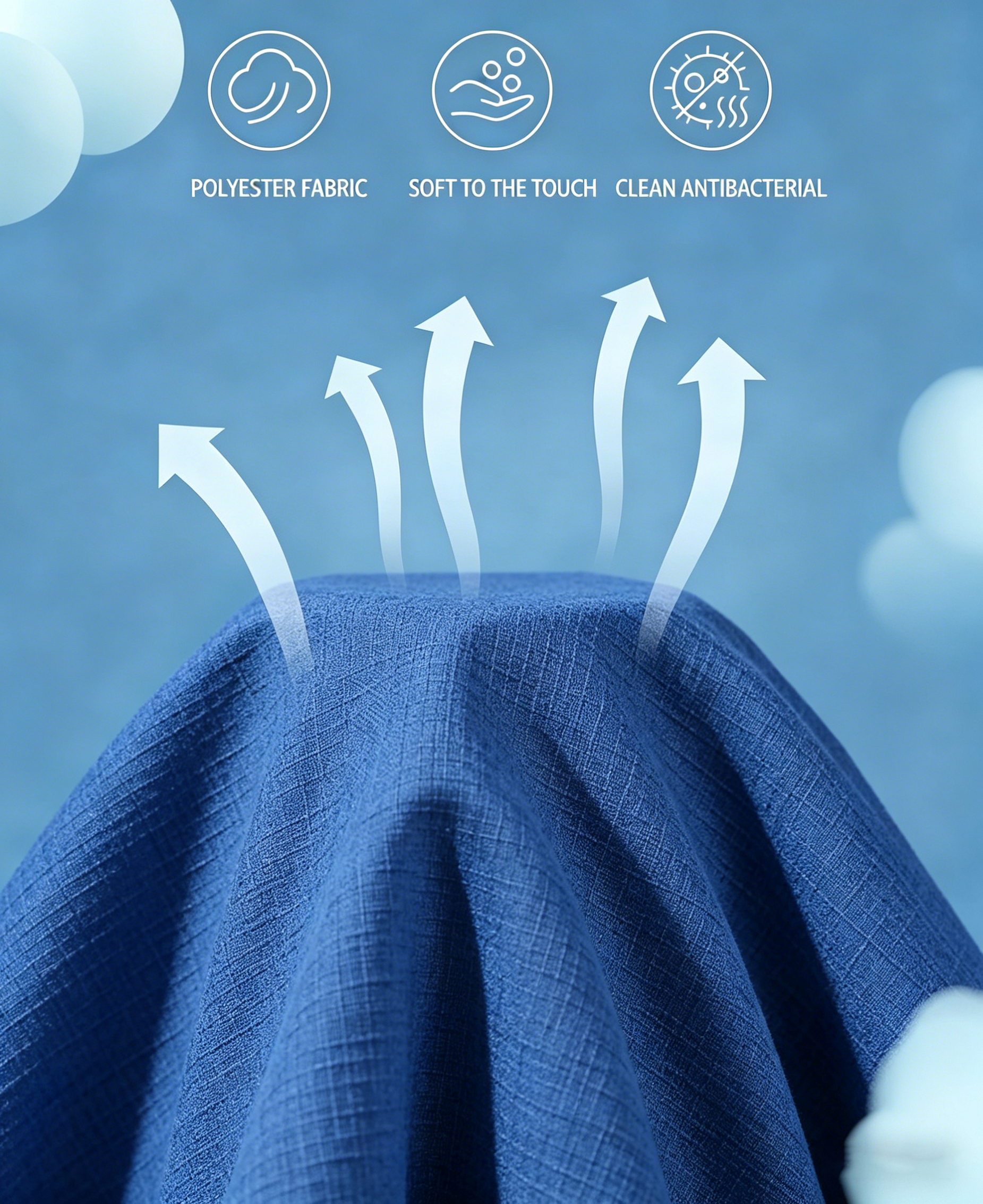 The soft polyester fabric gently fits the skin, offering excellent quick-drying breathability, keeping you dry and comfortable even in hot weather, with wrinkle resistance and shape retention for long-lasting wear.