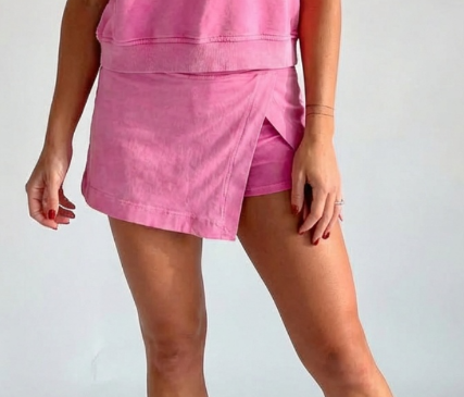 Featuring a hybrid skirt-and-shorts design, the outer A-line layer effectively conceals the hips and flatters the figure, while the inner safety shorts provide discreet coverage. The side-slit design adds a touch of dynamic flair, ensuring a look that is lively rather than rigid.