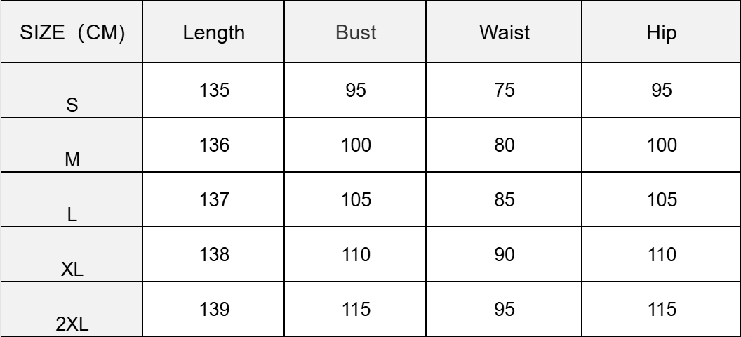 尺码表示例