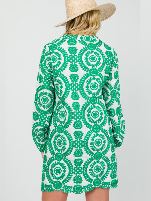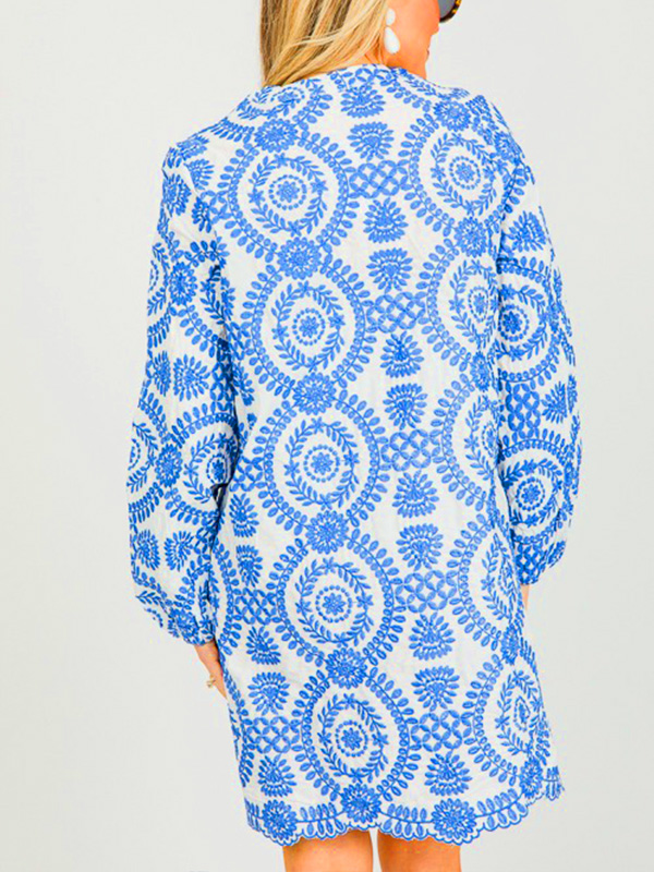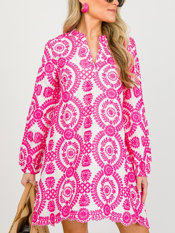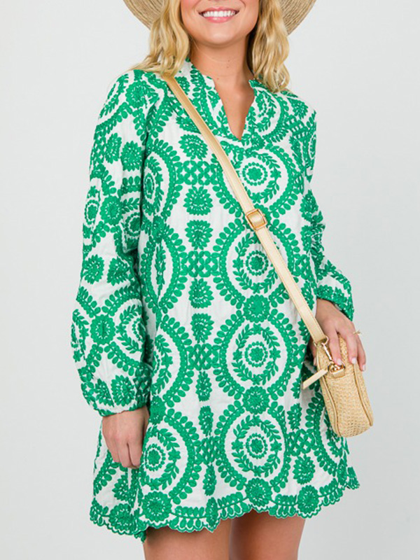 NEW🔥 Printed Lace Trim V Neck Shirt Dress