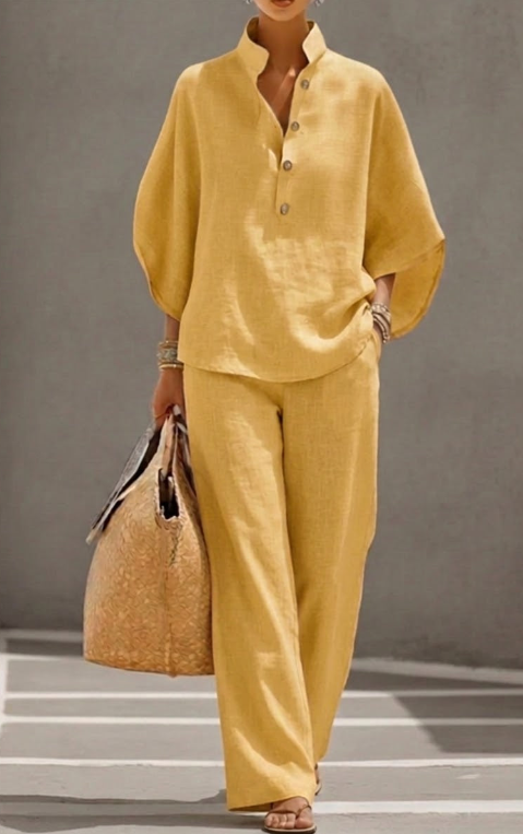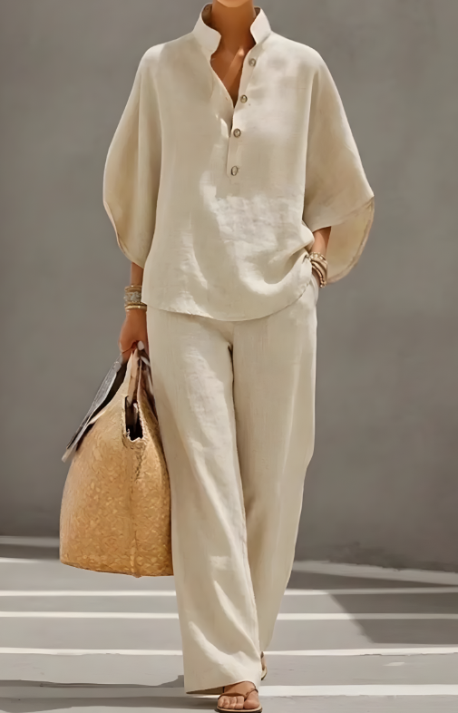 Upgrade your everyday wardrobe with this linen cotton two-piece set, designed for women who value both comfort and effortless style.