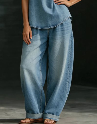 Light-wash denim meets a relaxed silhouette, striking the perfect balance between laid-back ease and refined elegance. Versatile enough for commuting, vacations, and everyday outings, it effortlessly creates that "effortless chic"—a look that is both relaxed and sophisticated.