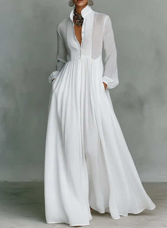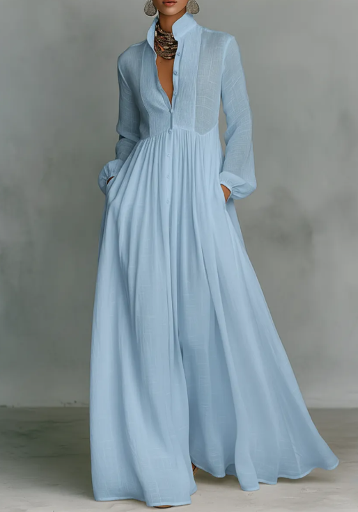 👗 Stand-Collar Waist-Cinching Long Dress with a Full Skirt