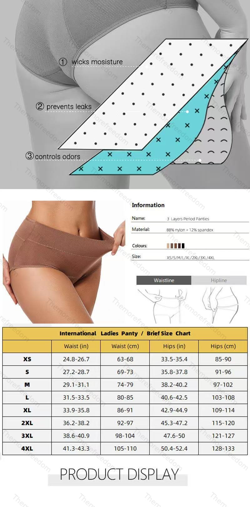 High-waisted menstrual panties 3-layer absorbent breathable leak-proof for women during menstruation