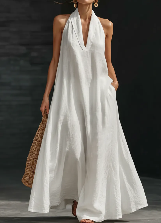 Halter neck deep V-neck design