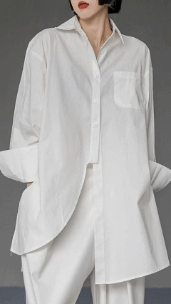 Unique White Asymmetrical Design Side Open Cotton Long Shirts Spring