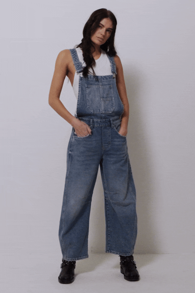 Women's casual washed loose denim overalls women's denim dungarees jumpsuit