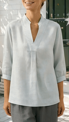 Women's comfortable and casual cotton and linen split-hem V-neck pullover shirt