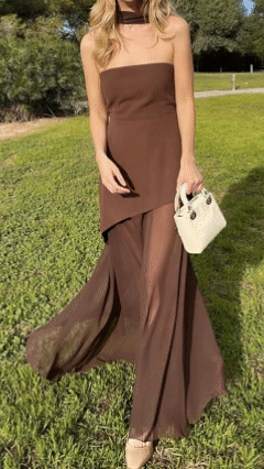 Women's stylish and elegant strapless solid-color mesh panel dress