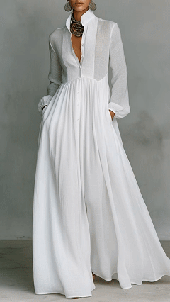 Women's elegant figure-flattering long-sleeved pleated A-line dress perfect for vacations and inspired by French style