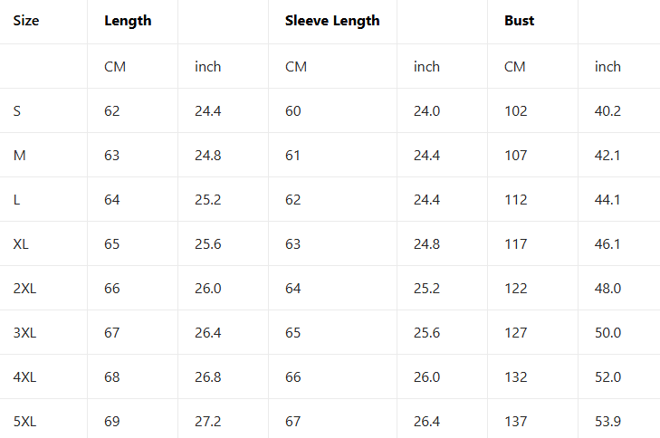 尺码表示例图片